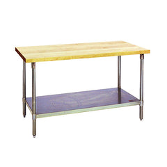 Wood top tables offer the ideal surface for specific food preparation processes, such as chopping meats or kneading dough. The softer wood surface is gentler on knives, helping to maintain their sharpness while providing better temperature regulation compared to stainless steel surfaces. Choose from our variety of commercial wood top tables, including butcher blocks and wood top work tables, to enhance your kitchen’s functionality.