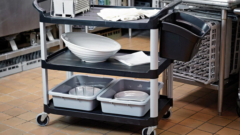 Need to move or store cans, cooking sheets, cutlery containers, dunnage bins or what have you? A storage rack is the answer! These inexpensive trolleys can do the work of many staff in transporting small items about, or can double as storage when you’re tight. Shop our Restaurant Supply Online Store and choose from variety of Racks & Carts including enclosed bun pan racks, open bun pan racks, utility carts and ware washing racks.