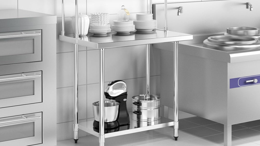 Stainless steel tables are crucial in commercial kitchens. They withstand heavy daily use, whether for food prep, chopping, or holding equipment. Made for intense tasks, they handle heat, impact, and cleaning chemicals without showing damage. Their polished surfaces allow for quick sanitization, reducing the risk of contamination. These tables also fit seamlessly with other equipment. The result is a cohesive, professional look that enhances the kitchen space.